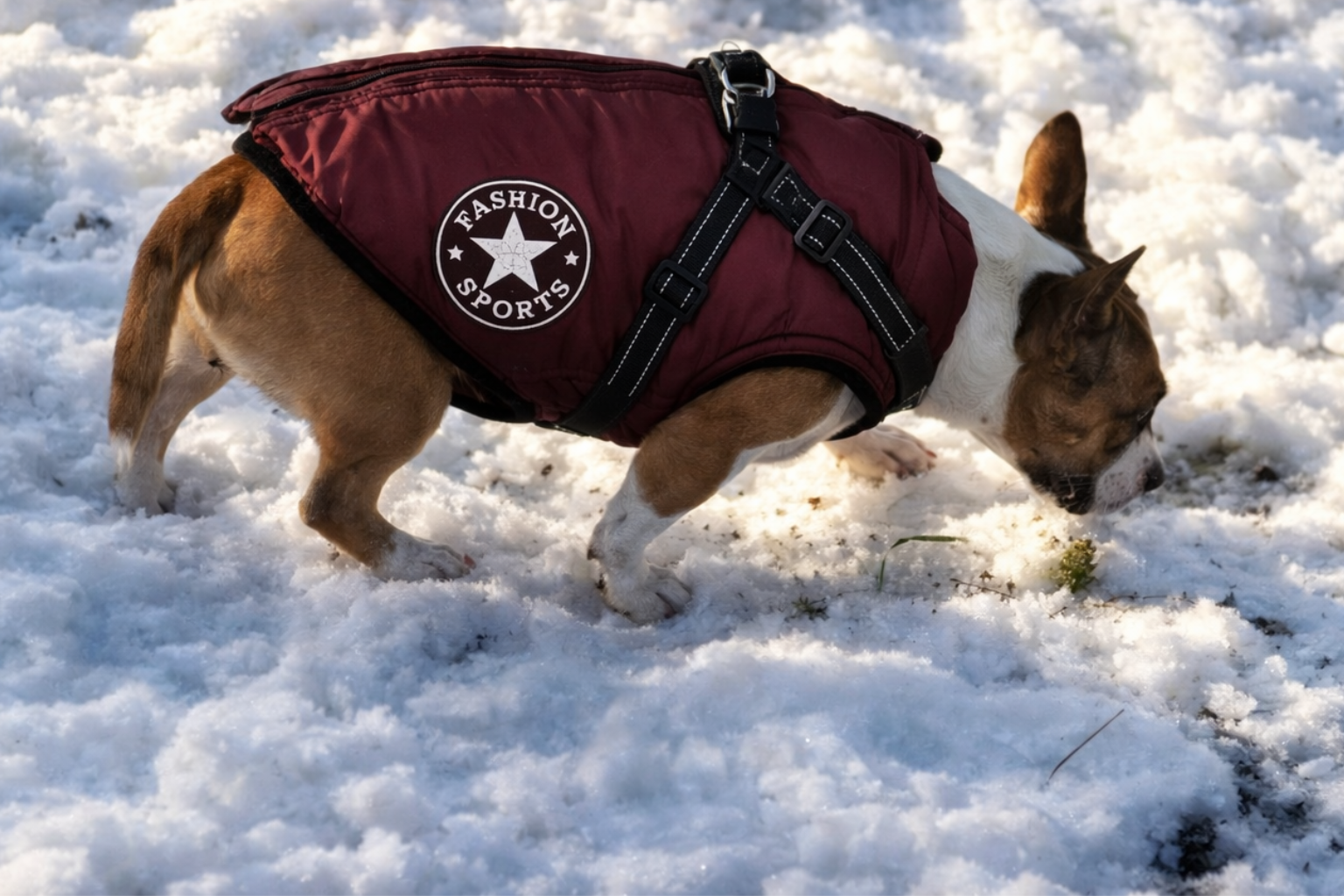 Warmer Hunde Wintermantel - mit integriertem Geschirr