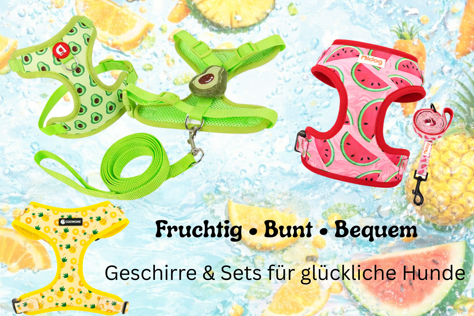 Fruchtiges Anti-Zug Hundegeschirr mit Leine