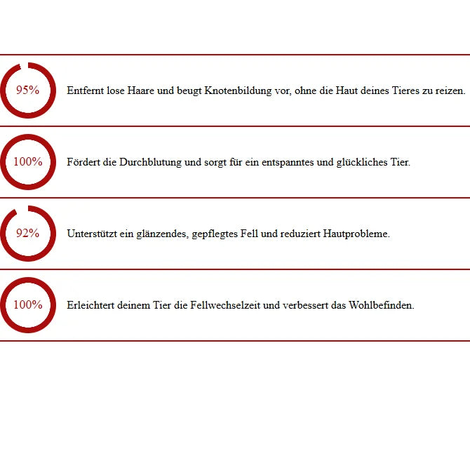 Durch ihre ergonomische Form liegt die Bürste perfekt in der Hand und sorgt dafür, dass selbst hartnäckiges Unterfell mühelos herausgebürstet wird. So reduzierst du den Fellverlust im Haushalt und tust gleichzeitig etwas für die Gesundheit deines Tieres.