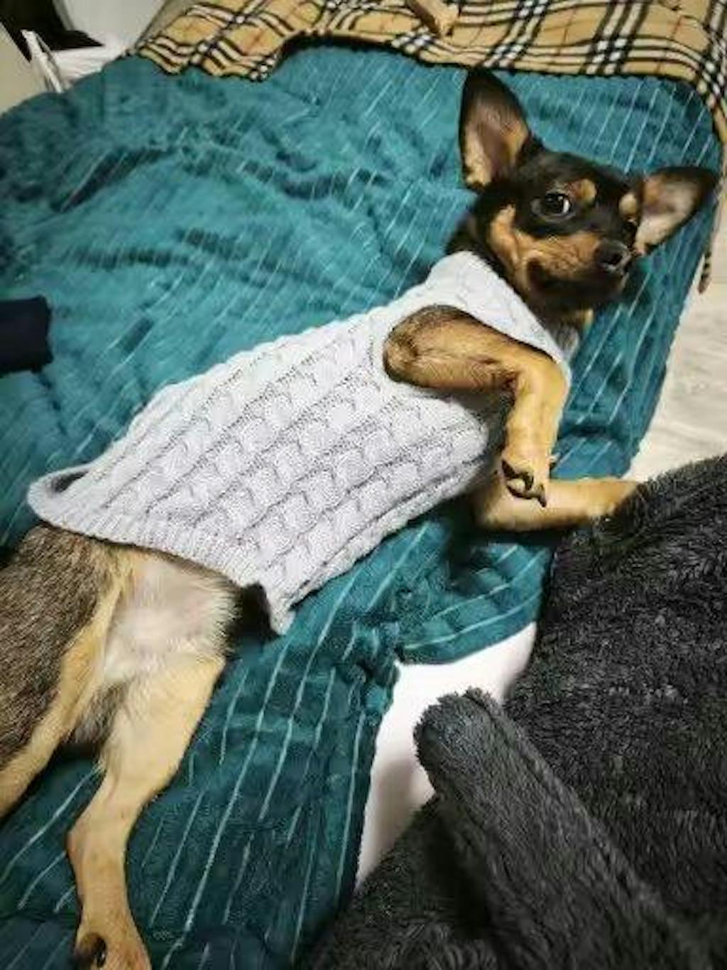 Dieser kuschelige Hunde-Strickpullover wurde entwickelt, um deinen Vierbeiner an kälteren Tagen angenehm warmzuhalten – egal ob beim Spaziergang, zu Hause oder unterwegs. Der hochwertige Strickstoff speichert die Wärme zuverlässig, während das elastische Material sich optimal an den Körper deines Hundes anschmiegt, ohne die Bewegungsfreiheit einzuschränken.