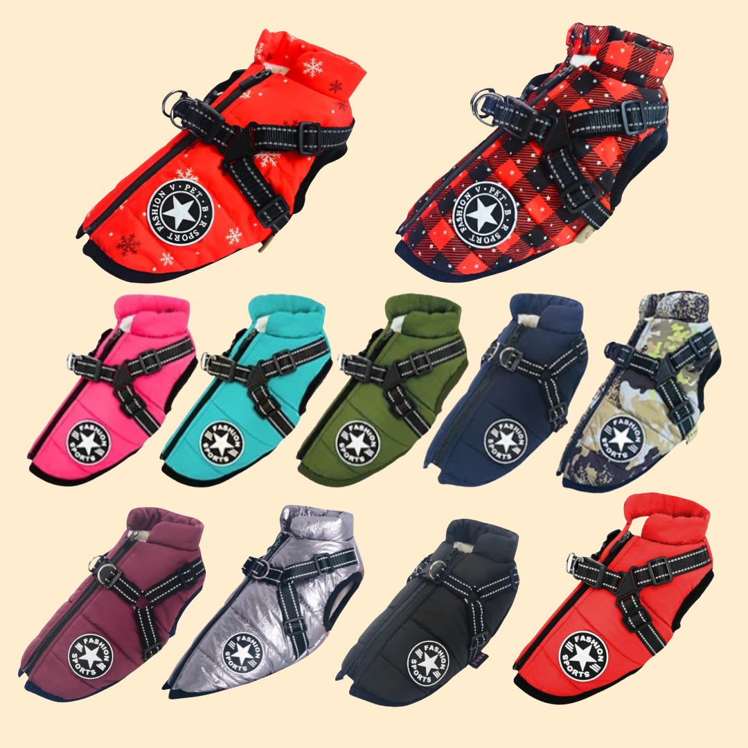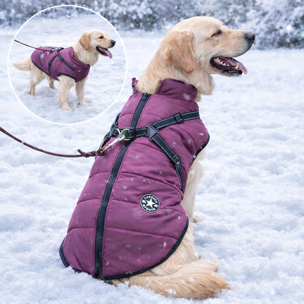 Warmer Premium Hunde-Wintermantel „Fashion Sports“ – wasserabweisend & mit integriertem Geschirr