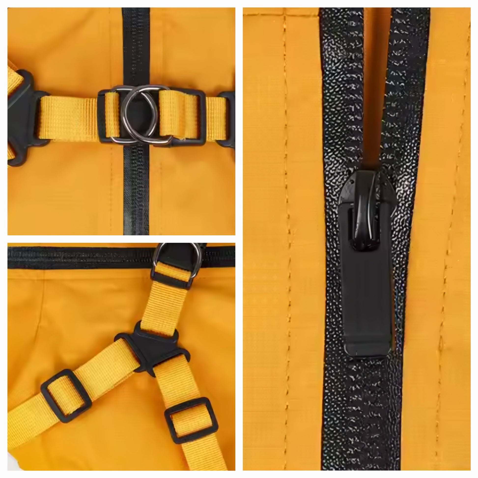 Kein separates Geschirr nötig. Der Regenmantel verfügt über ein fest integriertes, verstellbares Geschirr. Das spart Zeit, sitzt sicher und macht den Spaziergang besonders unkompliziert.